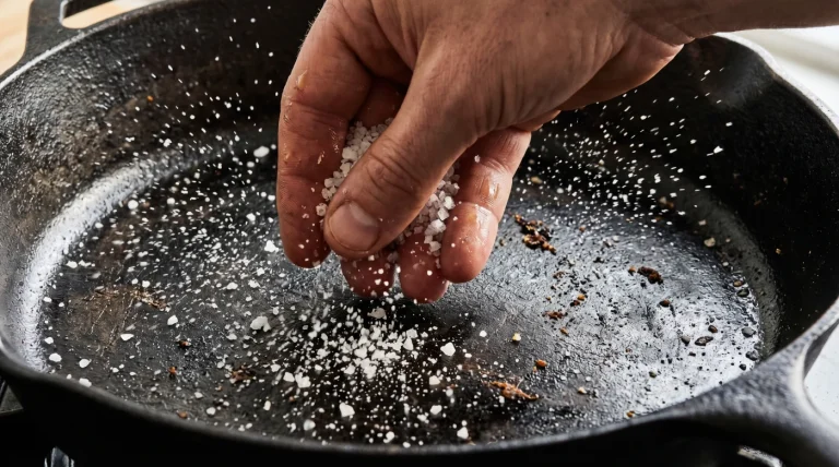 Gusseisenpfannen richtig reinigen: Warum aggressives Spülmittel die hart erarbeitete Patina zerstört und grobes Salz das perfekte Werkzeug für eine glatte,…