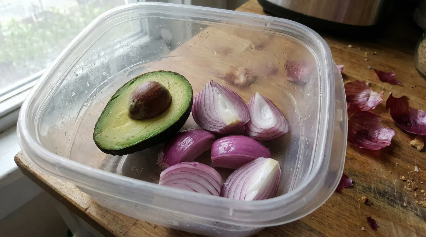 Wenn du ein frisch angeschnittenes Stück einer roten Zwiebel neben die Avocado legst, verändert sich das Mikroklima im Behälter sofort. Die Zwiebel verströmt Schwefelverbindungen – exakt jene ätherischen Gase, die uns beim Schneiden auf dem Holzbrett die Tränen in die Augen treiben. Im geschlossenen Raum einer Vorratsdose legen sich diese Gase wie ein sanfter, unsichtbarer Mantel über das empfindliche Grün der Avocado. Sie stoppen die Oxidation fast vollständig. Der Prozess wird eingefroren, ohne dass die Frucht berührt wird und ohne dass sich der Geschmack verfälscht.