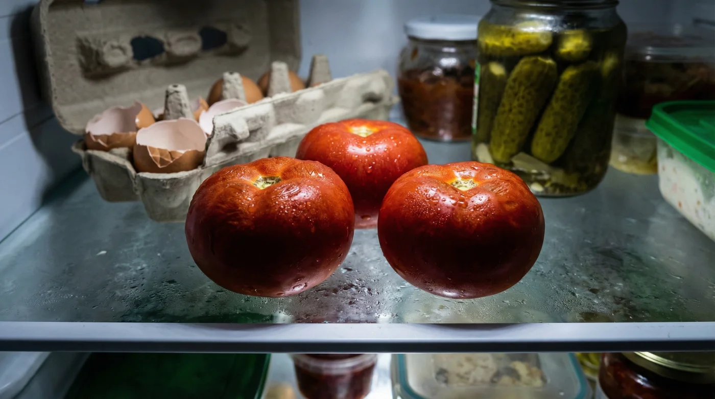 Doch genau in diesem Moment, wenn sich die schwere Kühlschranktür schließt, beginnt ein stiller, unumkehrbarer Verfall. Was als Versuch der Bewahrung gedacht war, ist in Wahrheit ein aromatischer Schockzustand. Die frische Tomate konserviert nicht im Kühlen, sie verliert in der Dunkelheit schlichtweg ihre Seele. Die Zellwände erschlaffen innerlich, das Fruchtfleisch verliert seine feste, saftige Spannung und wird stattdessen unangenehm mehlig. Der leuchtende Riese schrumpft geschmacklich auf die Größe eines faden Wassertropfens zusammen.