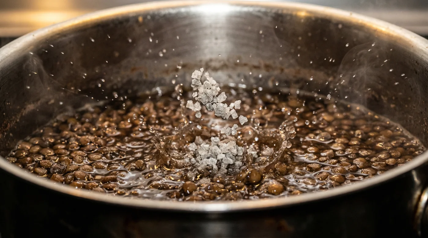 | Der Salz-Moment | Natrium bindet an Pektin und Kalzium in der Schale, wenn die Linse noch hart ist. | Gelinggarantie: Niemals wieder stundenlanges Kochen von harten Linsen. |