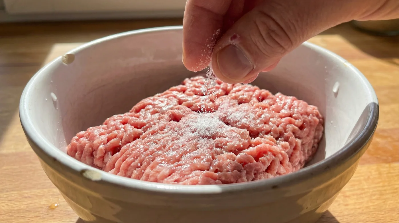 Es erfordert nur eine winzige Anpassung deiner Küchenroutine. Zuerst kümmerst du dich um das Fleisch, noch bevor du Zwiebeln schneidest, Saucen anrührst oder das Nudelwasser aufsetzt. Das Timing ist hier dein wichtigstes Werkzeug. Nimm exakt ein Viertel eines Teelöffels Natron für 500 Gramm Hackfleisch. Löse dieses Natron in einem Esslöffel kaltem Wasser auf. Das ist entscheidend, damit sich das Pulver gleichmäßig verteilt und du später nicht auf ein bitteres Nest beißt.